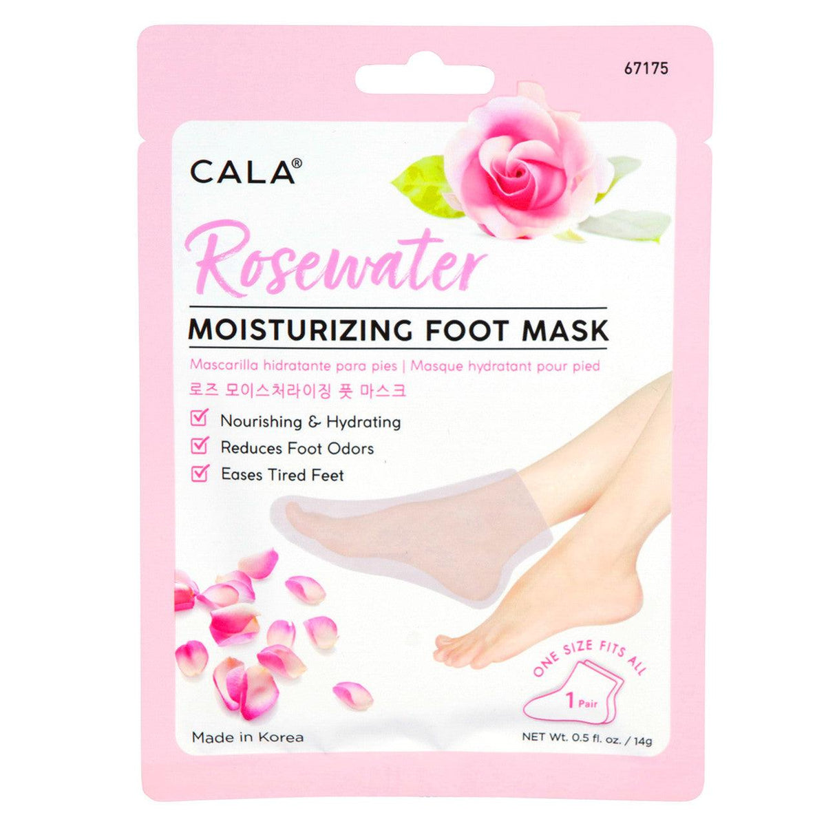 Kick dry, tired feet to the curb with CALA's Rosewater Foot Mask! Formulated with nourishing and calming ingredients your skin will love. Just slip them on, kick back, and relax for 10 minutes! Results, the softest, most silky skin your feet will ever feel.